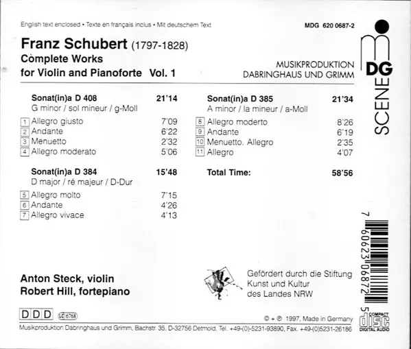 | Sonata D 408, G Minor (in) | 21:14 min | |