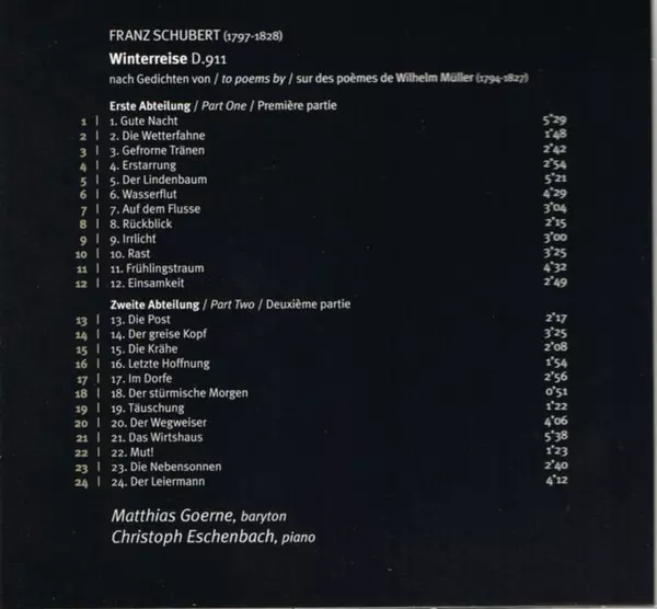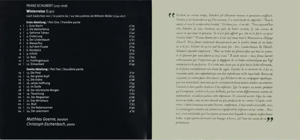 | Artista | Franz Schubert | Matthias Goerne | Christoph Eschenbach |