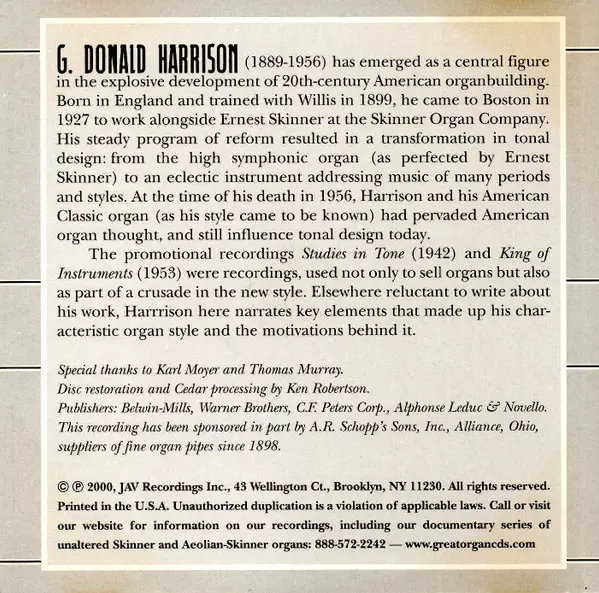 | Titolo | Studies In Tone & King Of Instruments - Reissues Of Promotional Recordings From The Aeoliean-Skinner Organ Company Narrated By G. Donald Harrison |