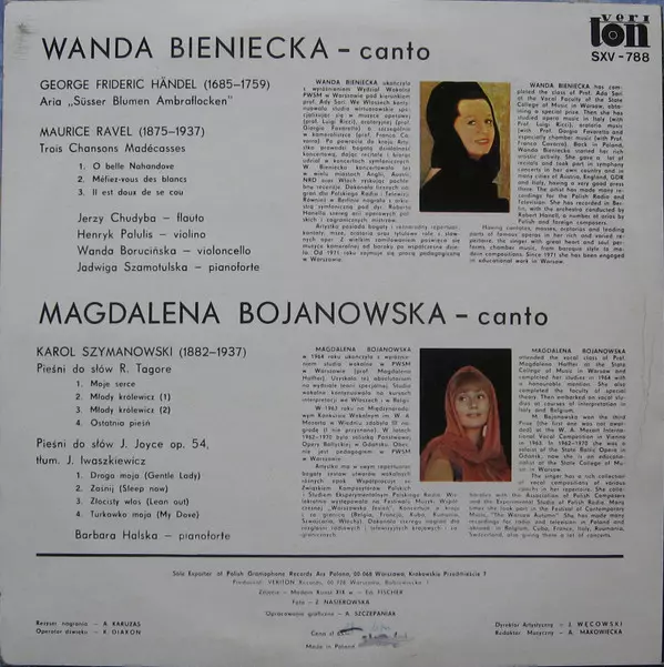 Artista | Georg Friedrich Händel | Maurice Ravel | Karol Szymanowski | Wanda Bieniecka | Magdalena Bojanowska |