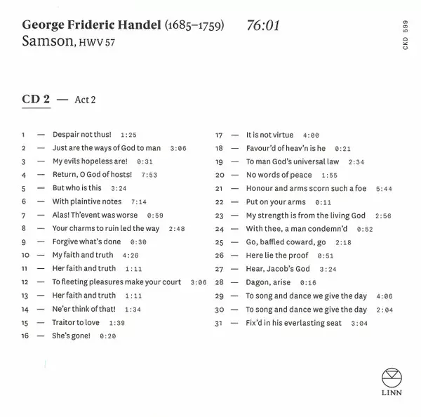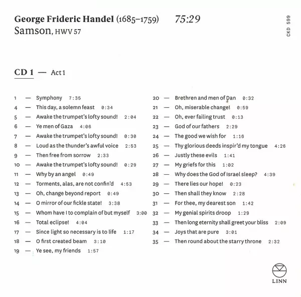 Georg Friedrich Händel: Samson versione su 3CD/Set di cofanetti in standard edizione. Questa particolare edizione è stata pubblicata in Europa nella casa editrice Linn in data 8. novembre 2019. Album comprende generi Musica classica e Musica barocca.