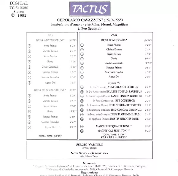 Artista | Sergio Vartolo | Nova Schola Gregoriana | Alberto Turco | Girolamo Cavazzoni |