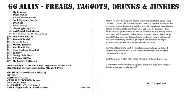 | Artista | GG Allin |