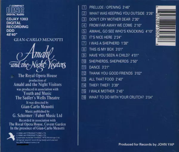 | Artista | Orchestra Of The Royal Opera House, Covent Garden | Chorus Of The Royal Opera House, Covent Garden | Gian Carlo Menotti | David Syrus |