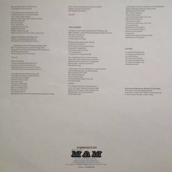 | Artista | Gilbert O'Sullivan |