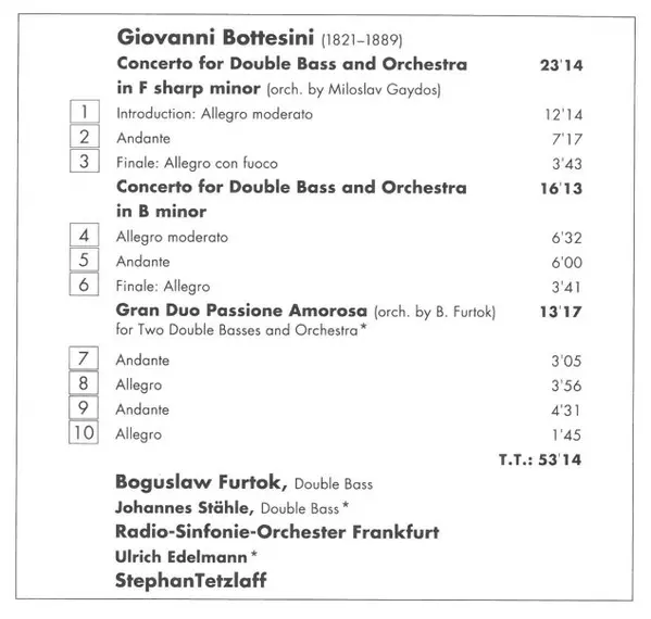 Artista | Radio-Sinfonie-Orchester Frankfurt | Giovanni Bottesini | Bogusław Furtok | Stephan Tetzlaff |