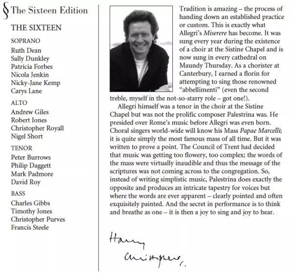 Artista | The Sixteen | Harry Christophers | Antonio Lotti | Giovanni Pierluigi da Palestrina | Gregorio Allegri |