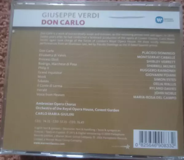 | Artista | Placido Domingo | Giuseppe Verdi | Montserrat Caballé | Carlo Maria Giulini | Orchestra Of The Royal Opera House, Covent Garden | Ruggero Raimondi | The Ambrosian Opera Chorus |