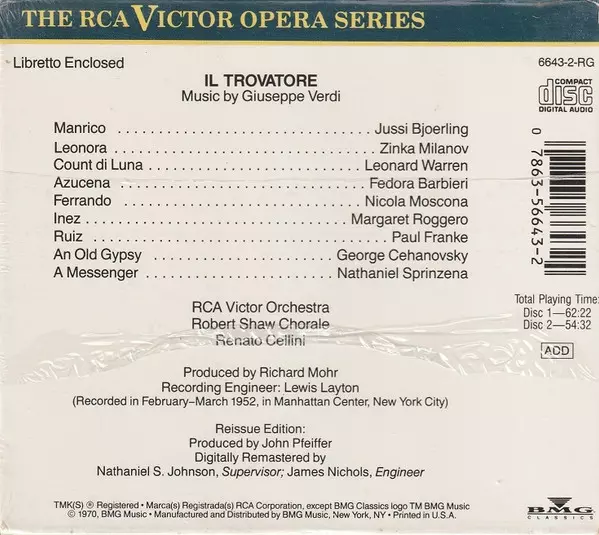 | Per saperne di più | BMG Classics Remastered US Import (1988 Reissue) |