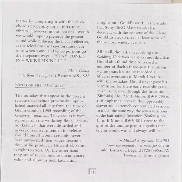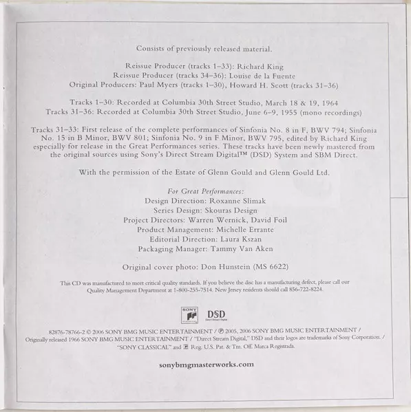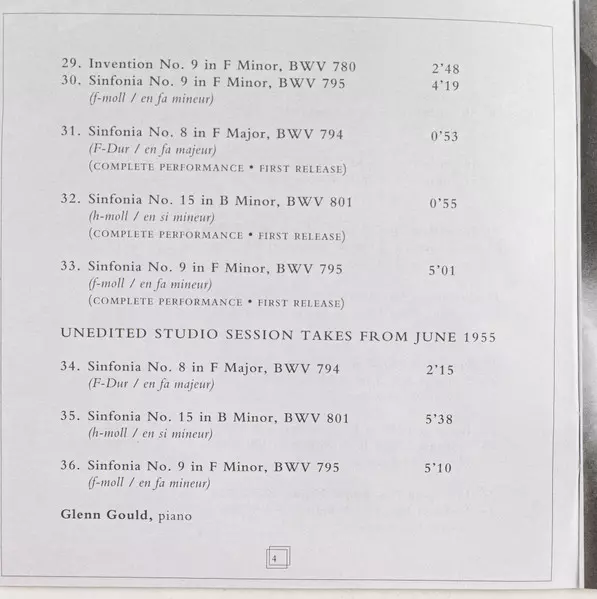 | Artista | Johann Sebastian Bach | Glenn Gould |