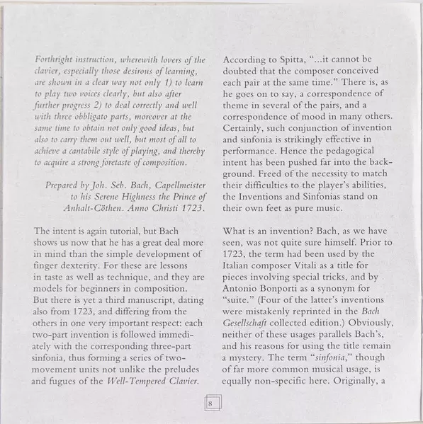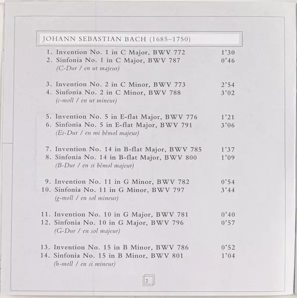 | Titolo | Bach: The Two And Three Part Inventions |