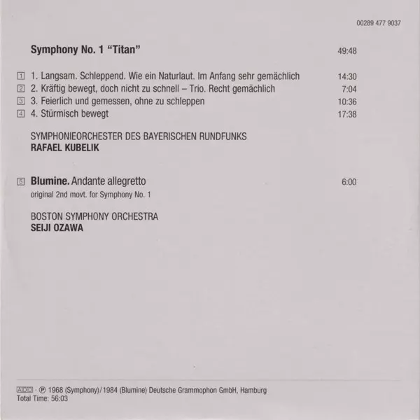Baritone Vocals Andreas Schmidt (2) | Conductor Riccardo Chailly | Soprano Vocals Susan Dunn | Soprano Vocals [Boy Soprano] Markus Baur | Tenor Vocals Werner Hollweg | Text By Gustav Mahler