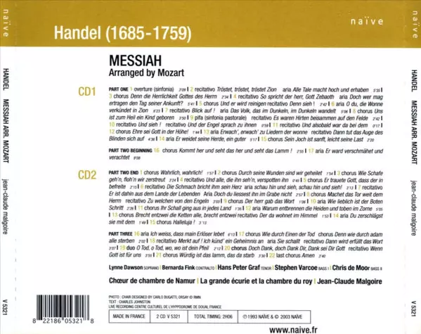 | Artista | Wolfgang Amadeus Mozart | Georg Friedrich Händel | Choeur de Chambre de Namur | Jean-Claude Malgoire | La Grande Ecurie Et La Chambre Du Roy |