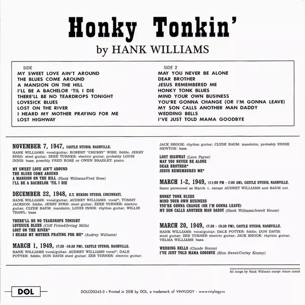 Hank Williams: Timeless Classic Albums versione su 5CD/Set di cofanetti in standard edizione. Questa particolare edizione è stata pubblicata in Europa nella casa editrice DOL in data 16. novembre 2018. Album comprende generi Folk, World, & Country e Country.
