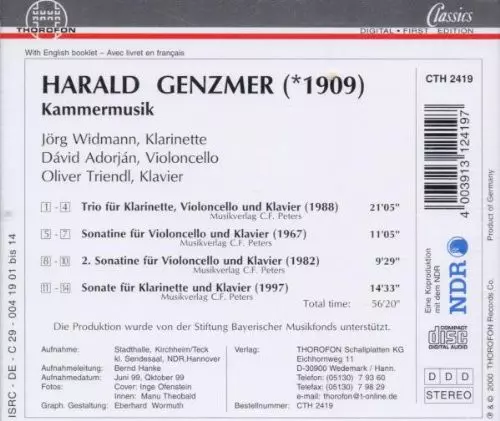 | Artista | Jörg Widmann | Oliver Triendl | Harald Genzmer | Dávid Adorján |