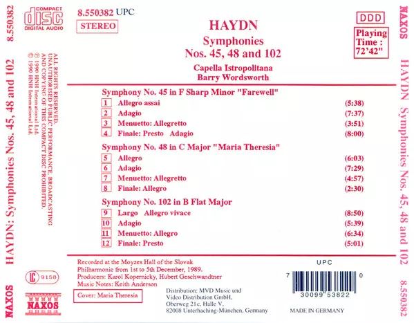 | Titolo | Symphonies No. 45 "Farewell" • No. 48 "Maria Theresia" • No. 102 |