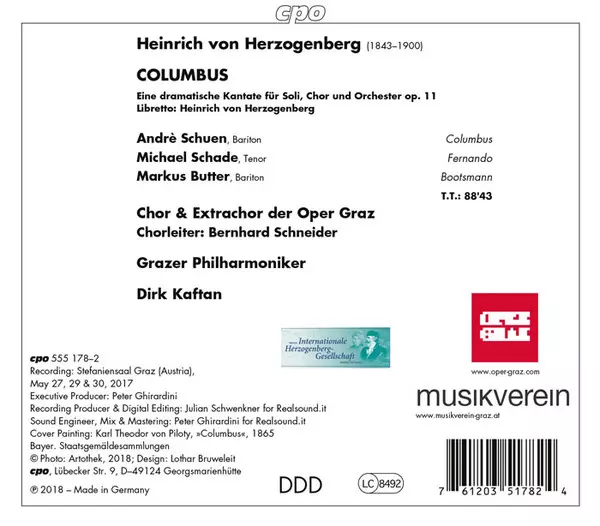 Artista | Michael Schade | Andre Schuen | Grazer Philharmonisches Orchester | Dirk Kaftan | Heinrich Von Herzogenberg | Markus Butter | Großer Chor Des Opernhauses Graz |