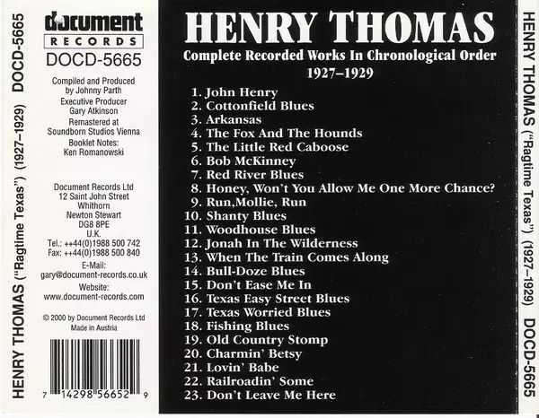 | Titolo | "Ragtime Texas" - Complete Recorded Works In Chronological Order (1927-1929) |