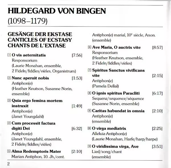 | Artista | Hildegard Von Bingen | Sequentia |