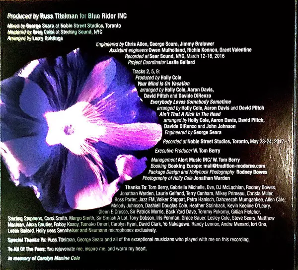 Arranged By Holly Cole | Bass, Arranged By David Piltch | Drums, Arranged By Davide Direnzo | Flute, Arranged By John Johnson (5) | Piano, Arranged By Aaron Davis | Written-By Sammy Cahn & Jimmy Van Heusen