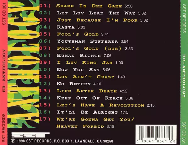H.R.: Anthology versione su CD in standard edizione. Questa particolare edizione è stata pubblicata in Stati Uniti nella casa editrice SST Records in data 28. luglio 1998. Album comprende generi Rock, Reggae, Punk, Roots-Reggae e Dub.