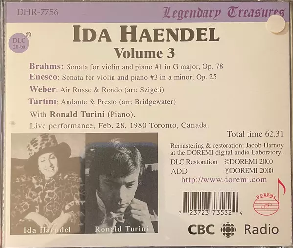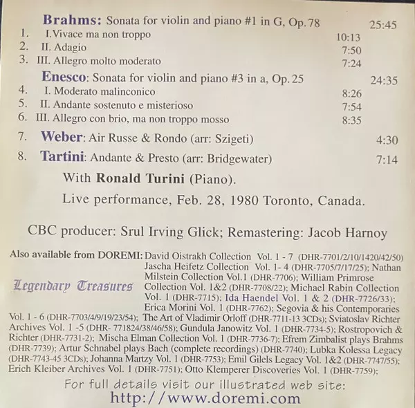 | Artista | Johannes Brahms | Ida Haendel | George Enescu |
