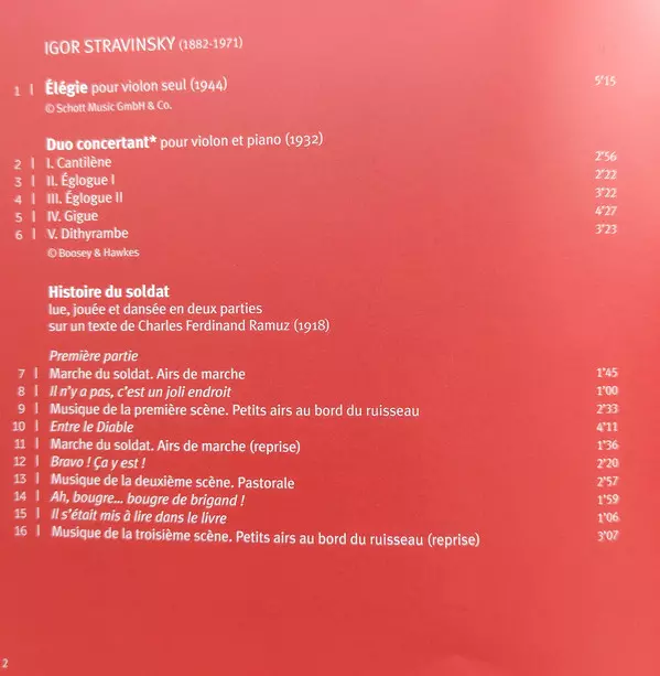| Artista | Igor Stravinsky | Isabelle Faust | Alexander Melnikov | Reinhold Friedrich | Lorenzo Coppola | Jörgen van Rijen | Javier Zafra | Dominique Horowitz | Wies de Boevé | Raymond Curfs |
