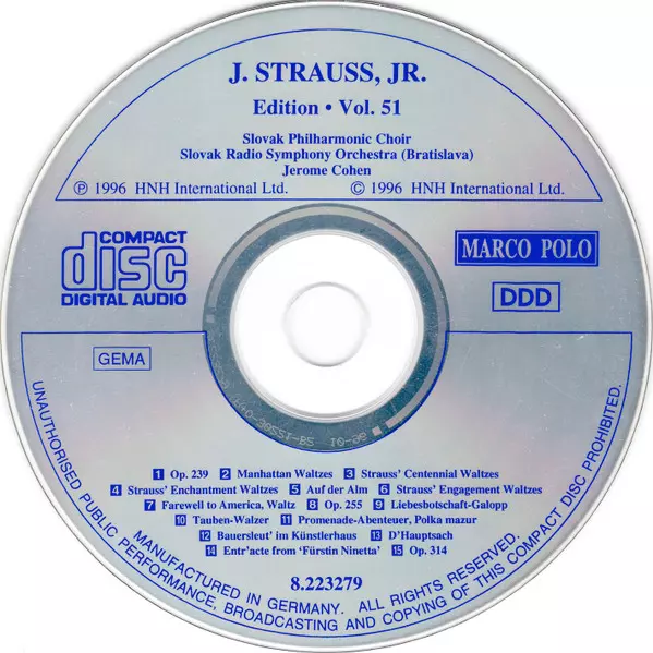 | Artista | Slovak Radio Symphony Orchestra | Johann Strauss Jr. | Slovak Philharmonic Chorus | Jerome D. Cohen |