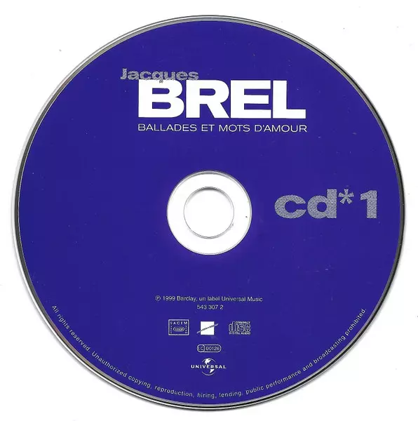 Jacques Brel: Jacques Brel versione su 2CD in rimasterizzati edizione. Questa particolare edizione è stata pubblicata in Francia nella casa editrice Barclay in data 17. novembre 1999. Album comprende generi Pop, Palcoscenico e schermo, Folk, World, & Country, Folk, Soundtrack e Chanson.