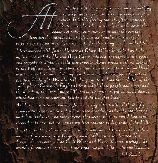 | Titolo | Legends Of The Fall (Original Motion Picture Soundtrack) |
