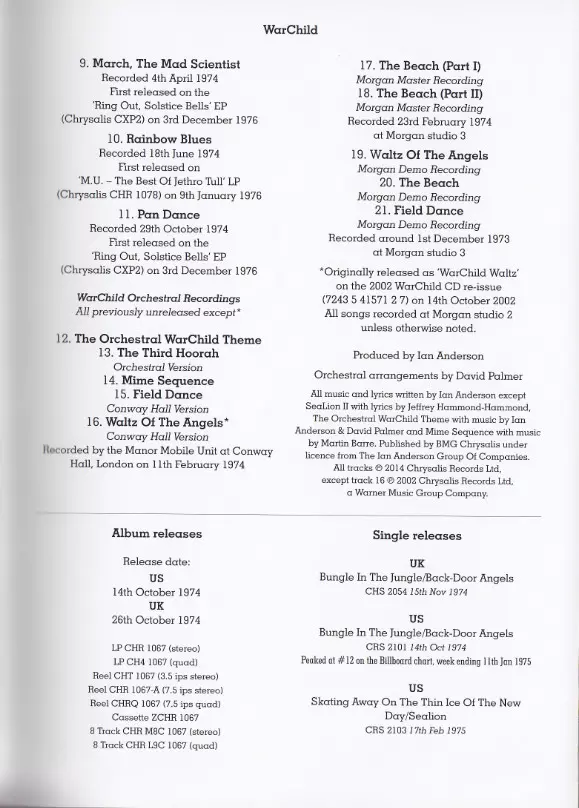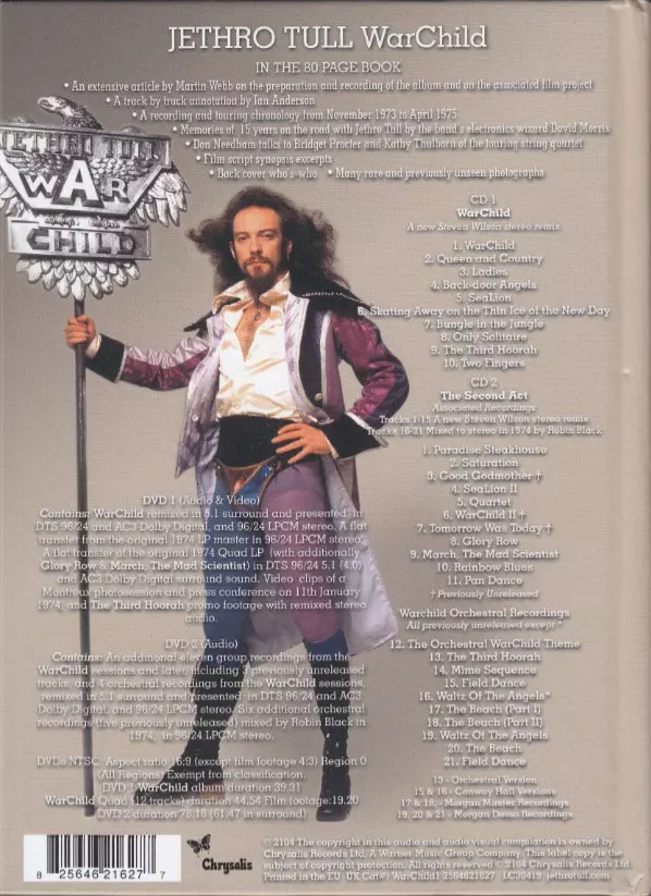 Jethro Tull: WarChild (The 40th Anniversary Theatre Edition) DLX versione su 2CD/2DVD/Set di cofanetti in deluxe edizione. Questa particolare edizione è stata pubblicata in Europa nella casa editrice Chrysalis in data 30. agosto 2024.