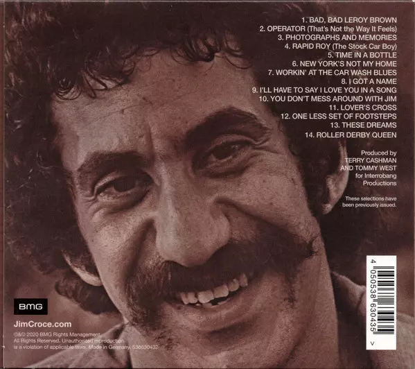 A CD and 180g vinyl reissue of the American singer-songwriter's 1974 hit compilation. The album reached number two and was certified PLATINUM. Includes #1 hits "Bad, Bad Leroy Brown" and "Time In A Bottle" and Top 10 hits "I'll Have To Say I Love You In A Song" and "You Don't Mess Around With Jim" and more.