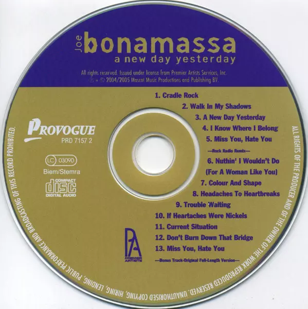 Joe Bonamassa's debut album A New Day Yesterday was released in 2000. The album was produced by Kevin Shirley, who has also worked with Led Zeppelin, Aerosmith and Iron Maiden. A New Day Yesterday features Bonamassa's blues-rock style and includes cover versions of songs by Robert Johnson, Elmore James and Eric Clapton. The album was well receiv...