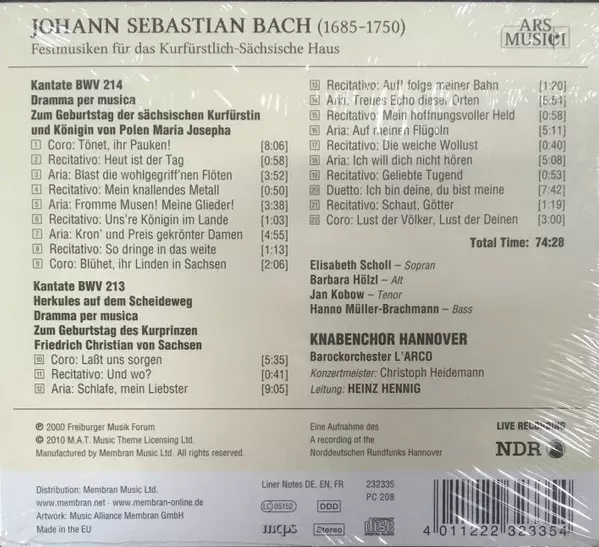 | Titolo | Festmusiken Für Das Kurfürstlich-Sächsische Haus.Kantaten, BWV 213 & 214 |