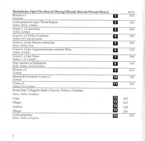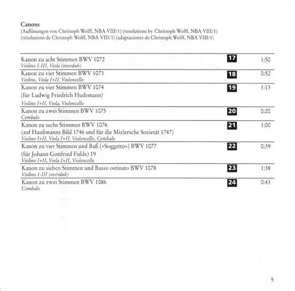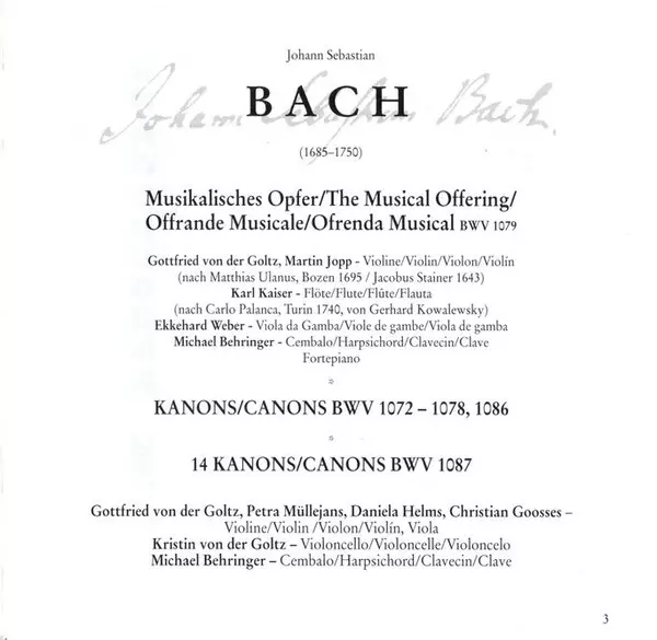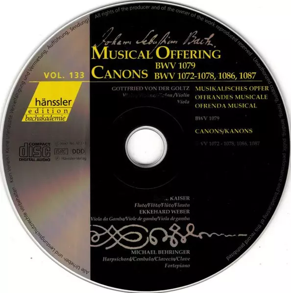 | Titolo | Musical Offering BWV 1079 / Canons BWV 1072 - 1078, 1086, 1087 |