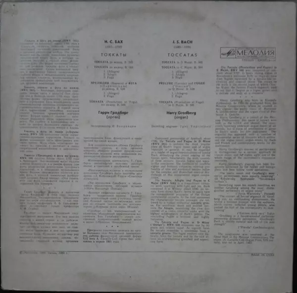 | Artista | Johann Sebastian Bach | Harry Grodberg |