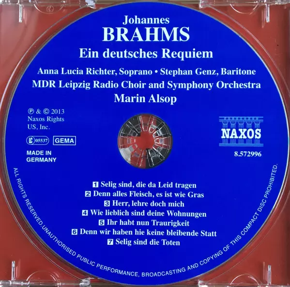 | Artista | Johannes Brahms | MDR Sinfonieorchester | Marin Alsop | Anna Lucia Richter | Stephan Genz | MDR Rundfunkchor |