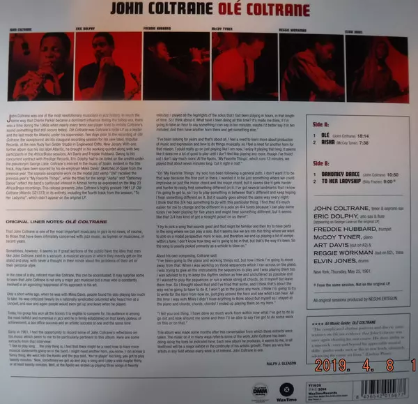 Coltrane's last album, Olé, which was released on Atlantic, was recorded in May 1961, two days after his debut Africa/Brass, which was released on Impulse. This groundbreaking album featured contributions from McCoy Tyner, Elvin Jones, Eric Dolphy , a very young Freddie Hubbard and bassists Art Davis and Reggie Workman. The complex rhythm...