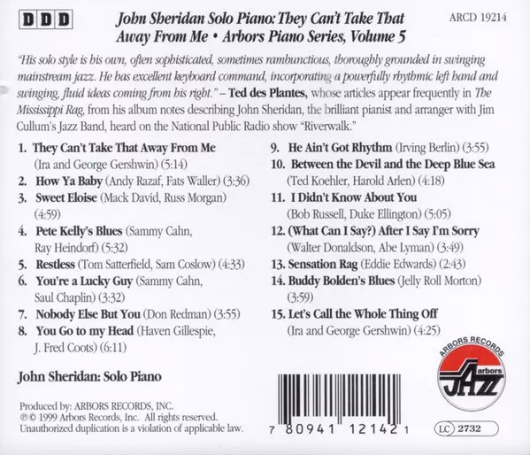 CD John Sheridan: They Can't Take That Away From Me