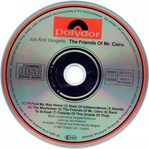The Friends of Mr Cairo is an album by Jon & Vangelis , released in 1981. The album reached number 7 in the UK Albums Chart. The album was awarded a UK Phonographic Industry Silver Certificate on 1 July 2014 for selling over 60,000 copies in the United Kingdom. The album spawned three singles, "I'll Find My Way Home", "The Friends of Mr Cairo" a...