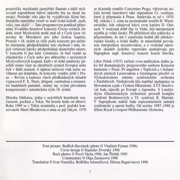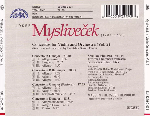 | Artista | Josef Mysliveček | Libor Pešek | Shizuka Ishikawa | Dvořák Chamber Orchestra |
