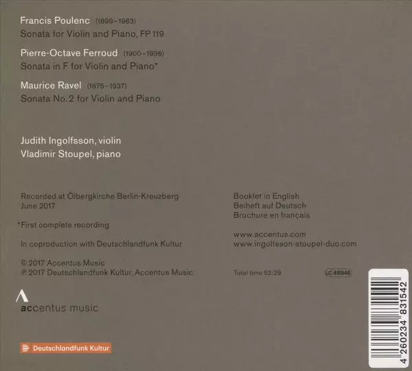 Artista | Maurice Ravel | Francis Poulenc | Judith Ingolfsson | Vladimir Stoupel | Pierre-Octave Ferroud |