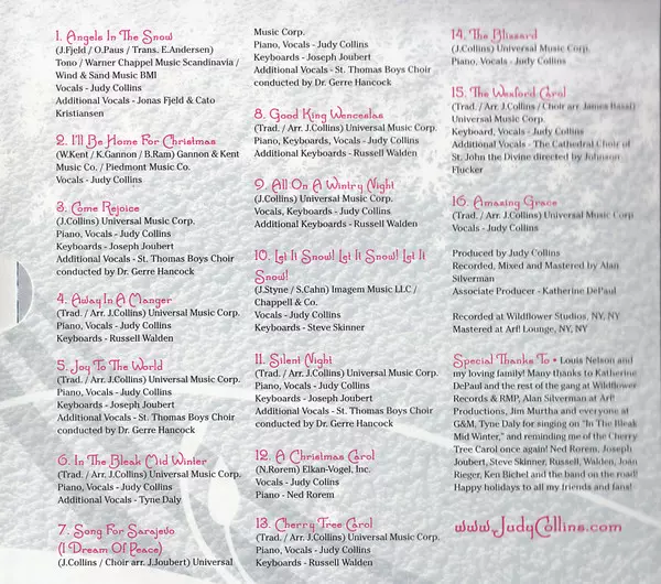 Judy Collins: Christmas With Judy Collins versione su CD in standard edizione. Questa particolare edizione è stata pubblicata nella casa editrice Wildflower Records (2) in data 4. novembre 2022. Album comprende generi Folk, World, & Country, Folk, Christmas e Holiday.