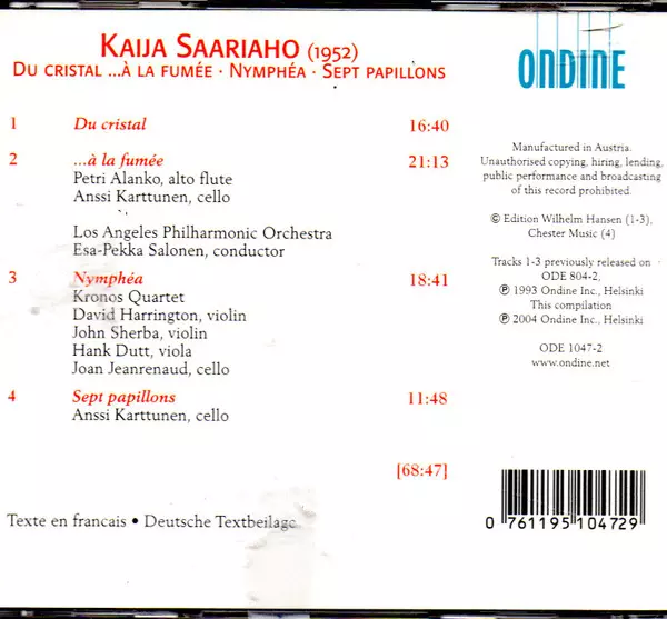Artista | Kronos Quartet | Los Angeles Philharmonic Orchestra | Kaija Saariaho | Esa-Pekka Salonen | Anssi Karttunen | Petri Alanko |
