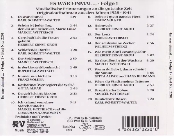 | Titolo | Es War Einmal ... Folge 1 | Musikalische Erinnerungen An Die Gute Alte Zeit |