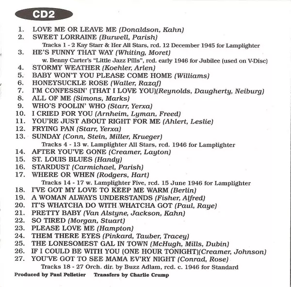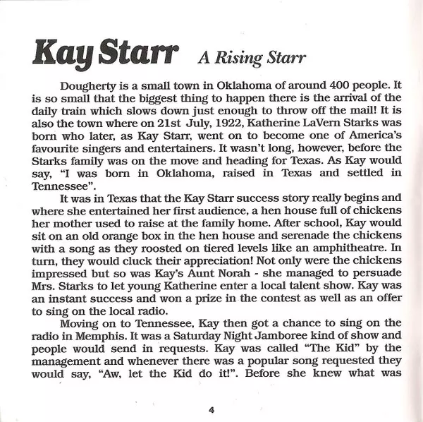 Kay Starr: A Rising Starr versione su 2CD in standard edizione. Questa particolare edizione è stata pubblicata in REGNO UNITO nella casa editrice Jasmine Records in data 9. dicembre 1997. Album comprende generi Pop e Vocale.