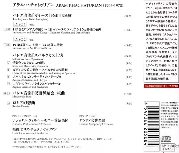| Artista | The London Symphony Orchestra | Aram Khatchaturian | National Philharmonic Orchestra | Loris Tjeknavorian |