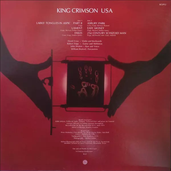 USA was recorded at the end of King Crimson's last tour in the 1970s in June 1974. It was released as the band's epitaph in the spring of 1975 as a single album at a time when double or triple albums seemed appropriate for live albums. Towards the end of the vinyl era in the mid-1980s, the album was cancelled and was no longer available until it...