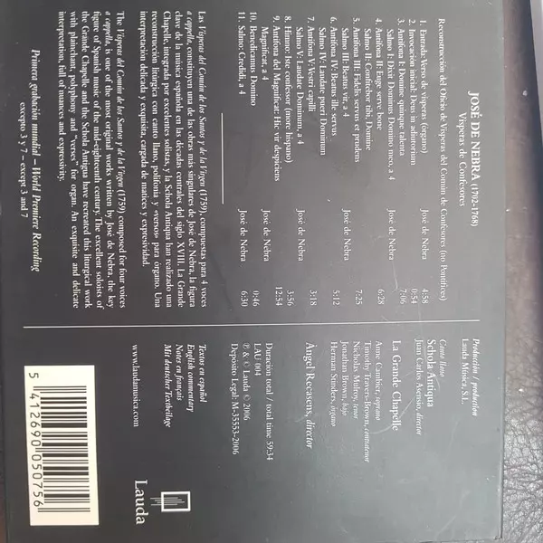 Artista | Jose De Nebra | La Grande Chapelle | Schola Antiqua | Àngel Recasens |