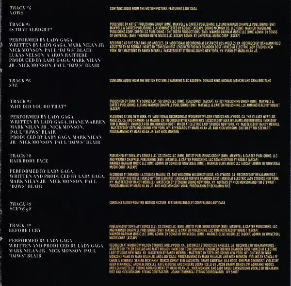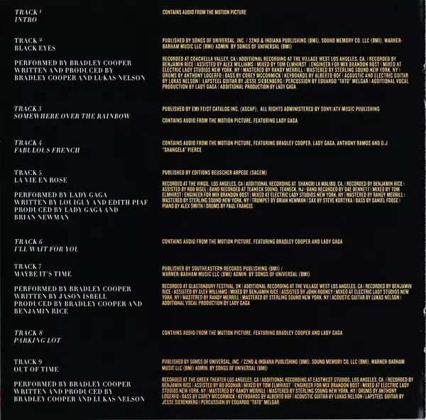 | Acoustic Guitar Lukas Nelson | Bass Corey McCormick | Drums Anthony LoGerfo | Guitar Tim Stewart (3) | Keyboards Alberto Bof | Lap Steel Guitar Jesse Siebenberg | Mastered By Randy Merrill | Mixed By Tom Elmhirst | Mixed By [Assisted By] Brandon Bost | Percussion Eduardo Fridman-Melgar | Recorded By Benjamin Rice | Recorded By [Assisted By] Alex Williams (9), Bo Bodnar | Written-By, Producer Bradley Cooper, Lady Gaga, Lukas Nelson | |||